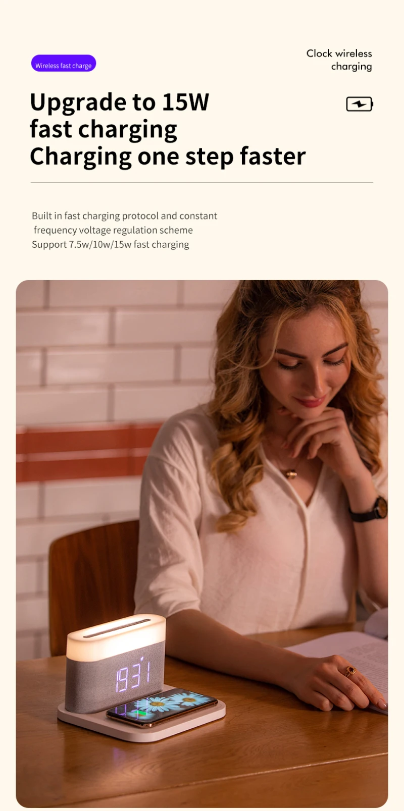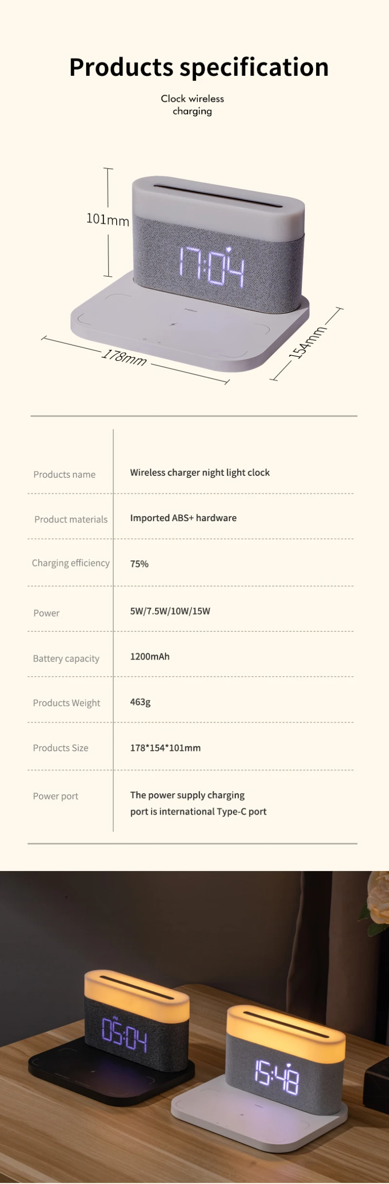 S26 Беспроводное зарядное устройство s 15 Вт Быстрая зарядка настольный ночник светильник с часами три цвета температуры Яркость регулируемое зарядное устройство подарок