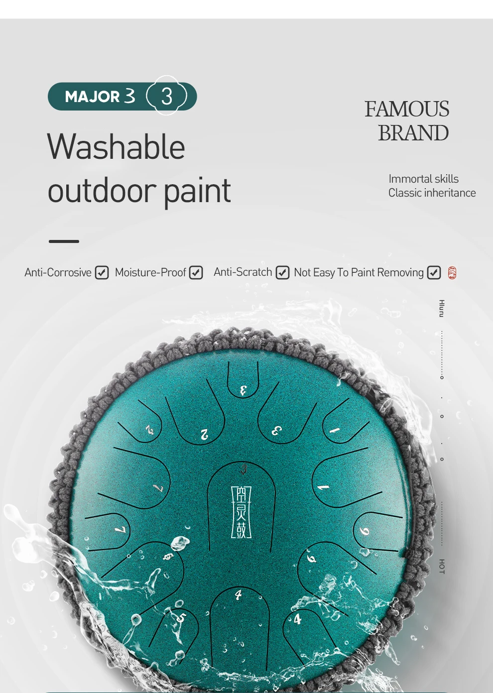 Hluru использует специальную слюду вместо алюминиевых частиц. Светильник, отраженный на его поверхности, имеет вспышку, похожую на жемчуг. С разных углов он имеет разные цвета. Поэтому перламутровая краска дарит людям новое, красочное и ослепительное ощущение, что делает внешний вид эфирного барабана более показательным текстуру.
