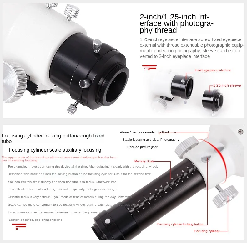 Фокусировка: 2-Дюймовая Редукторная фокусировка, с интерфейсом от 2 до 1,25 дюймов