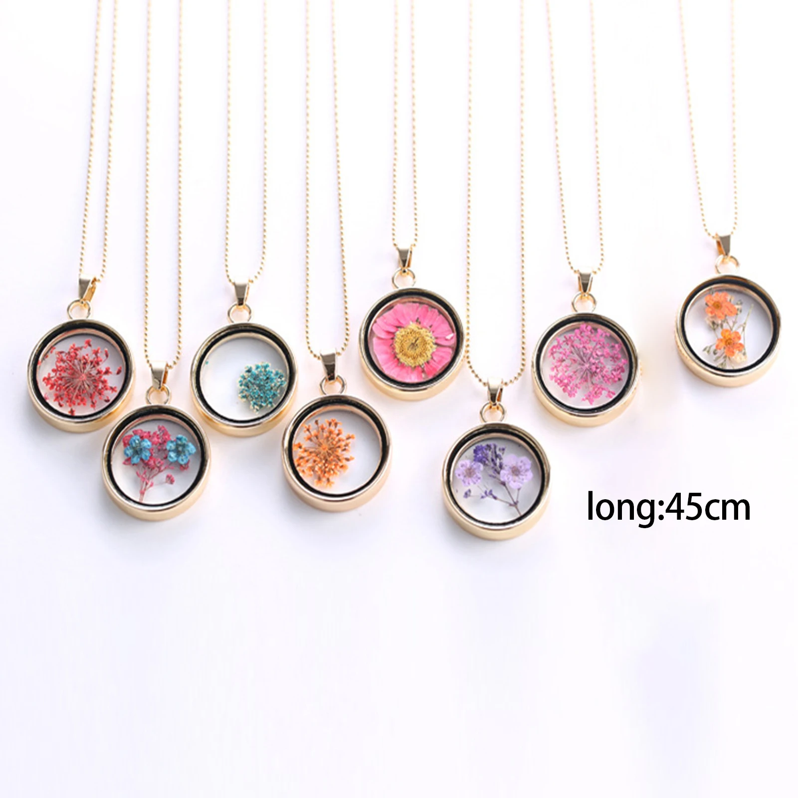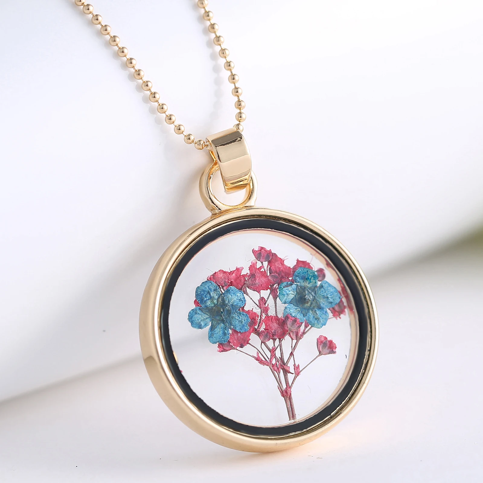 Круглые настоящие сухие цветы, ожерелье золотого цвета, подвески в виде цветов, ожерелья-цепочки для женщин и девочек, цепочки для свитера, вечерние украшения на шею