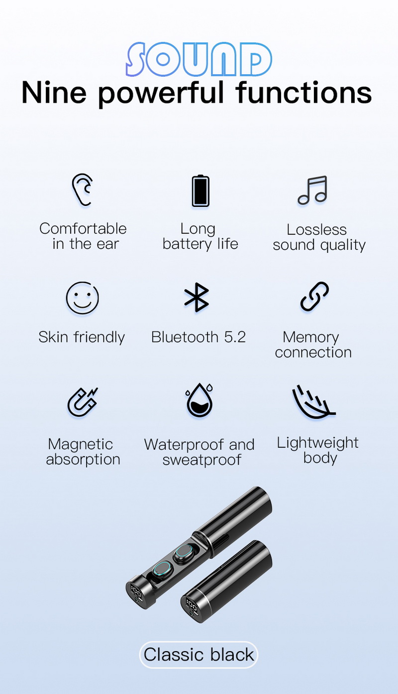 2: Настоящая Беспроводная bluetooth-гарнитура Bluetooth 5,2/длительный срок службы батареи/касание отпечатков пальцев;