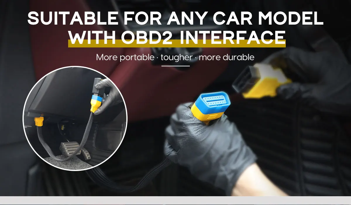 Используя Удлинительный кабель OBD для тестирования во время вождения, владелец автомобиля может найти гнездо провода OBD без сгибания или приседания.