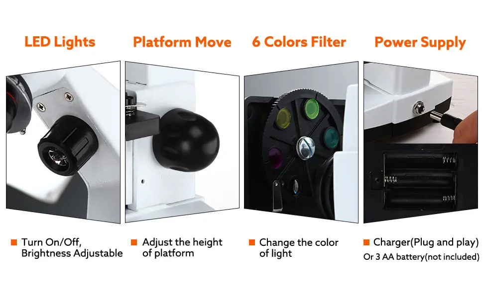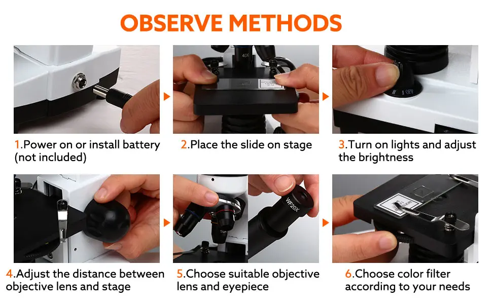 WF 10X, 20 X окуляра отдельно или с 2X объективом, сотрудничество 4X 10X 40X объективных линз, предлагаем 8 типов увеличений.
