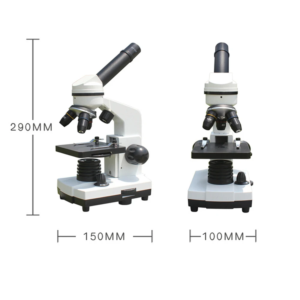 Микроскопы для студентов, 40X-1600X биологический составной Микроскоп с 2 кулярами и 3 цели, светодиодный свет, слайды, встроенный релейный объектив