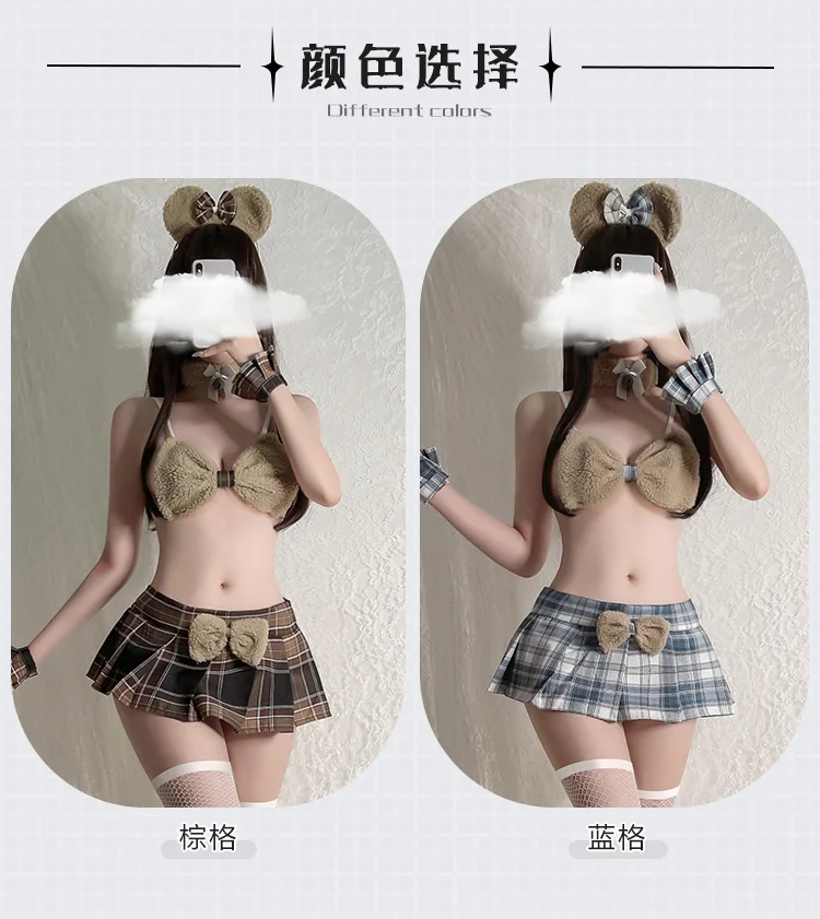 Повязка для волос + кольцо с колокольчиком + бюстгальтер с бантом + браслет * 2 + плиссированная юбка + штаны