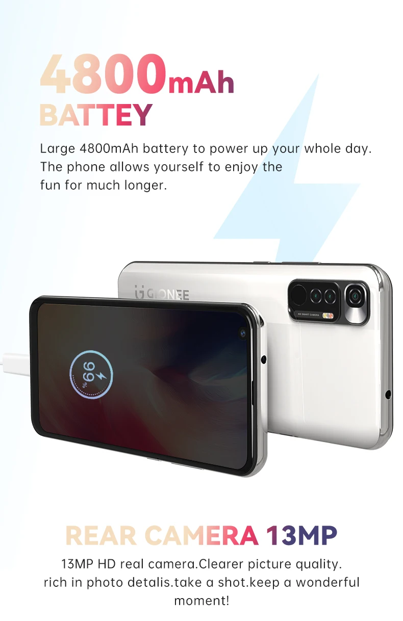 Мобильный телефон 4G RAM 128G ROM восьмиядерный смартфон 6,8 "HD IPS экран Android 11 Helio P60 13 МП камера заднего вида 4800 мАч GIONEE P61