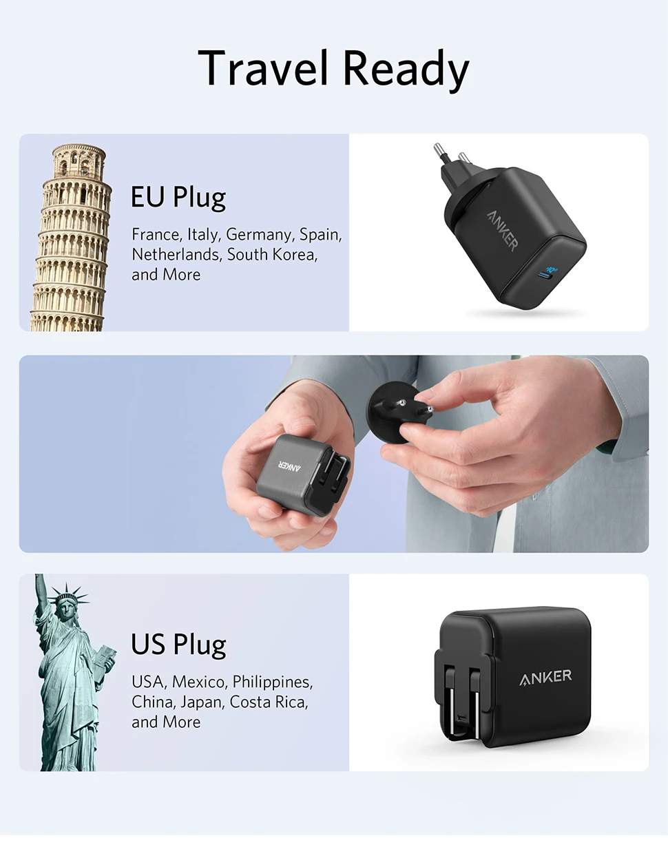 Возьмите это Мощное зарядное устройство с собой, куда бы вы ни отправились, благодаря легкому дизайну и складной вилке.