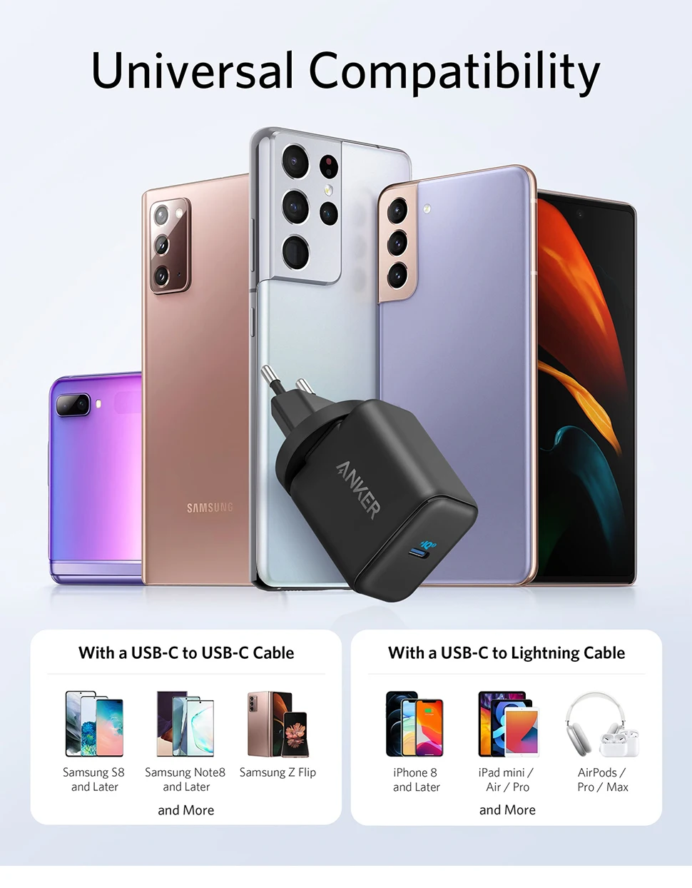 С 25 Вт зарядной мощности и поддержкой супер быстрой зарядки Samsung, PowerPort III 25 Вт может полностью зарядить ваш S21, S21 + и S21 Ultra на высокой скорости.