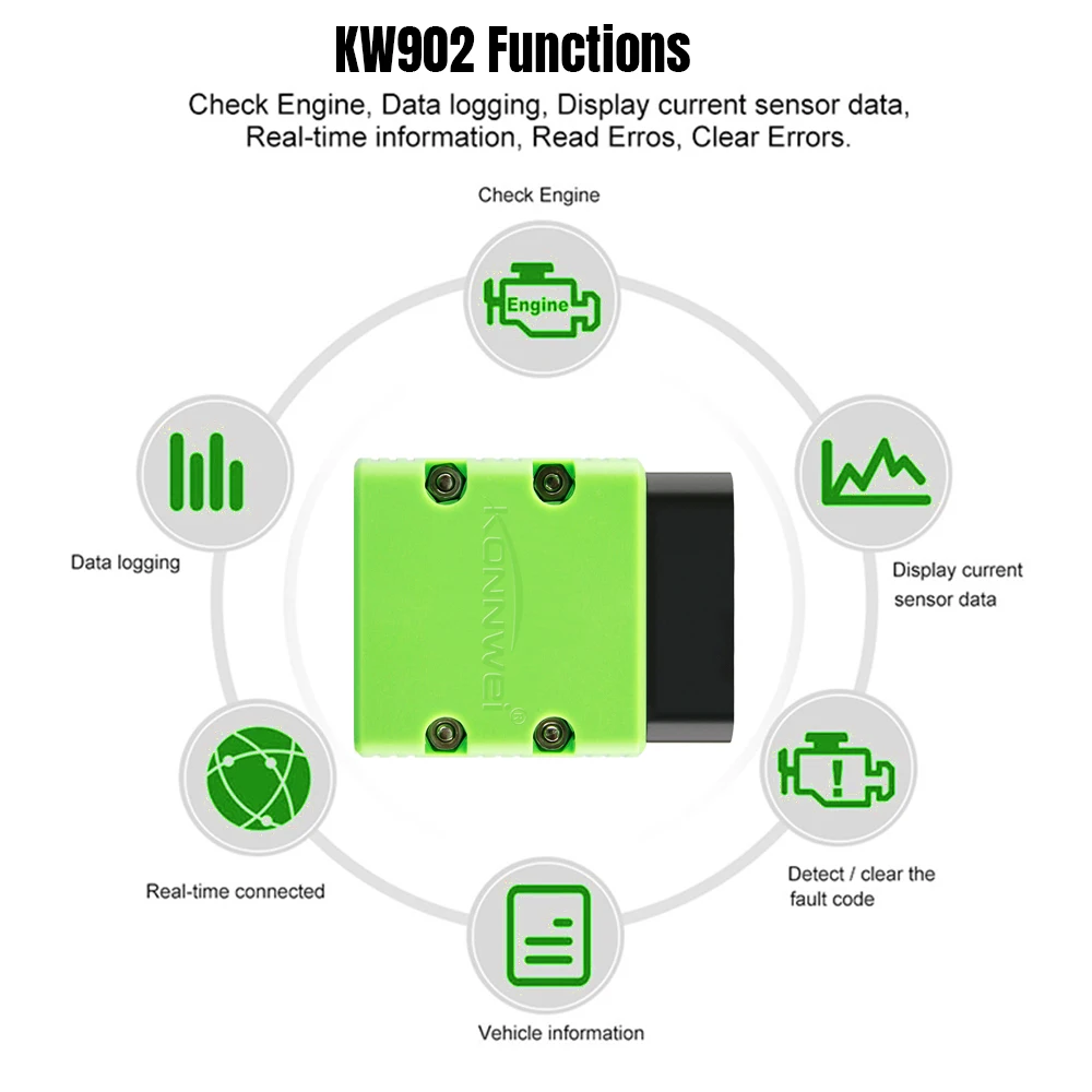 ELM327 поддерживает дизельные автомобили или грузовики, и этот ELM327-версия bluetooth только для мобильных телефонов android. Если вам нужна версия IOS, пожалуйста, обратитесь к KW902 wifi, нажмите на картинку ниже: