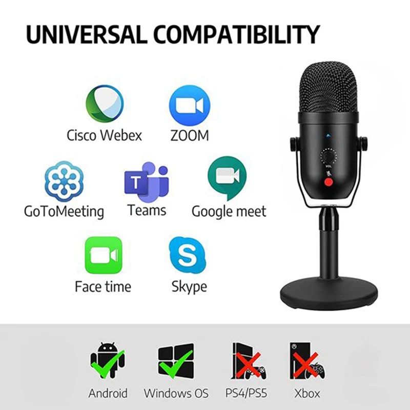 [USB микрофон для компьютера] Этот компьютерный микрофон предназначен для записи, пения, потоковой передачи, игр, подкастов, YouTube, голосового управления, Skype, Twitch, звукового облака и так далее. Кабель Type-C-USB 2,0 обеспечивает более стабильное и плотное соединение, а микрофон совместим с компьютерами и ноутбуками Windows, macOS и Linux.