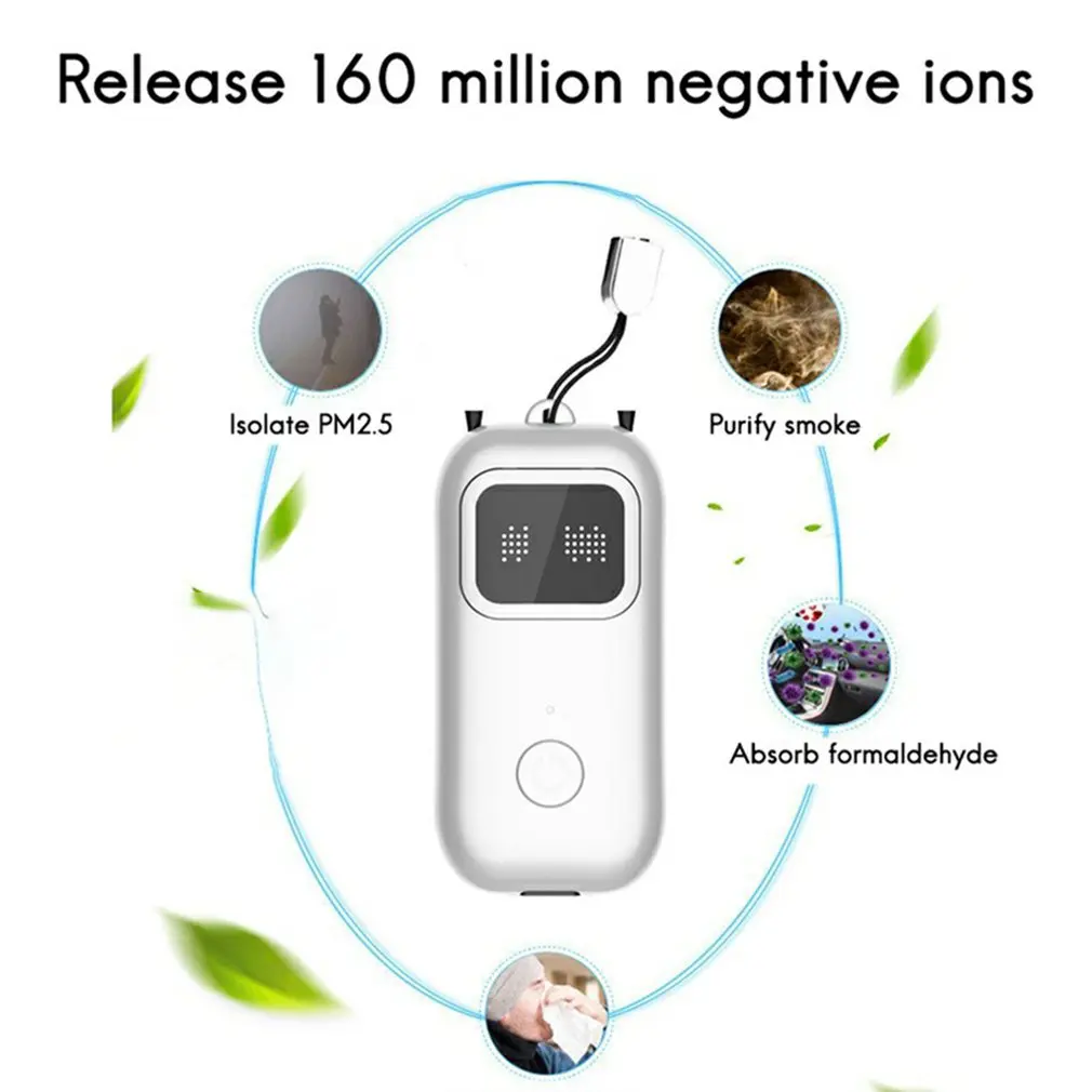 Долговечный: портативный очиститель воздуха имеет usb-порт для зарядки, который может заряжаться в течение 2 часов и используется для обеспечения свежего воздуха около 20-40 часов.