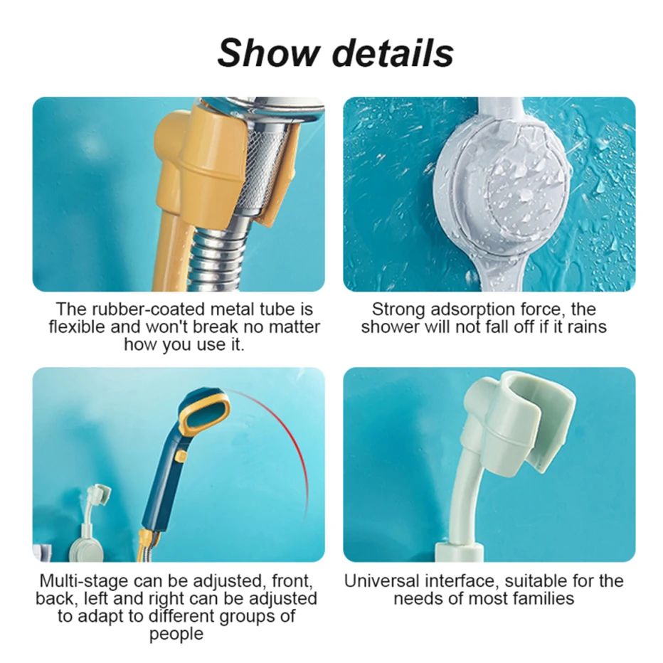 Этот тип держателя для душевой головки не имеет ударов, прост в установке и использовании, вы можете легко сосать его на поверхности стены.