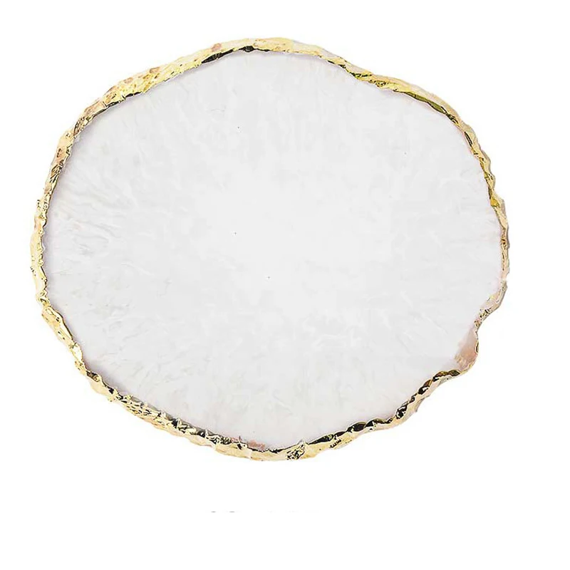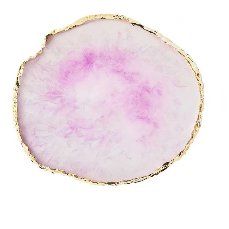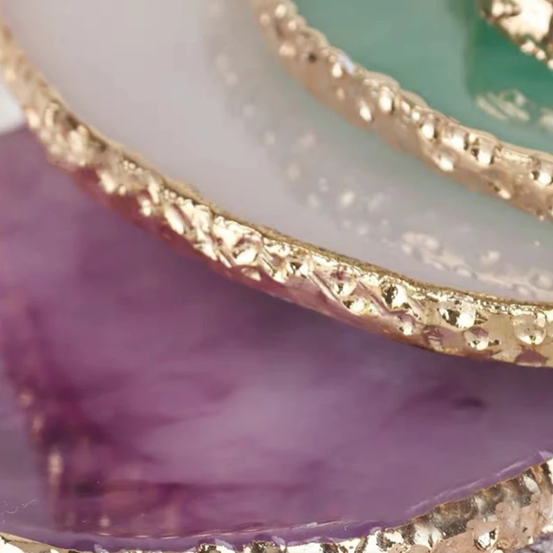 Изготовлен из полимерного материала, имитирует натуральные Агатовые драгоценные камни, с золотым краем покрытия, круглой формы и элегантного яркого цвета, выглядит ярким, как настоящий Агат, но более износостойким и сломанным.