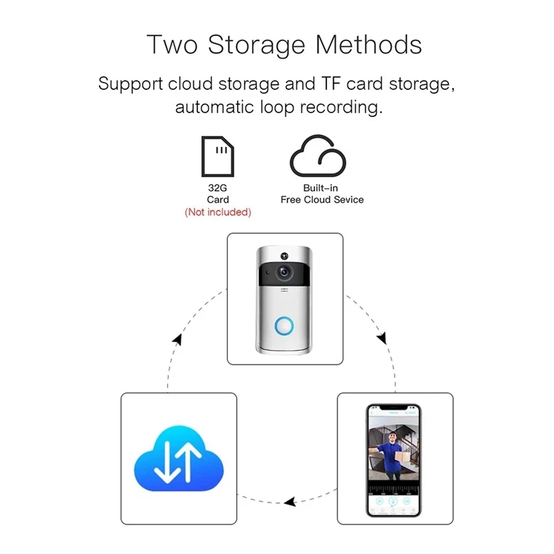 [2 способа хранения] -- поддержка облачного хранилища для удобного использования. Или вы можете использовать tf-карту (не входит в комплект) для хранения видео, и она поддерживает автоматическую циклическую запись, если карта заполнена.