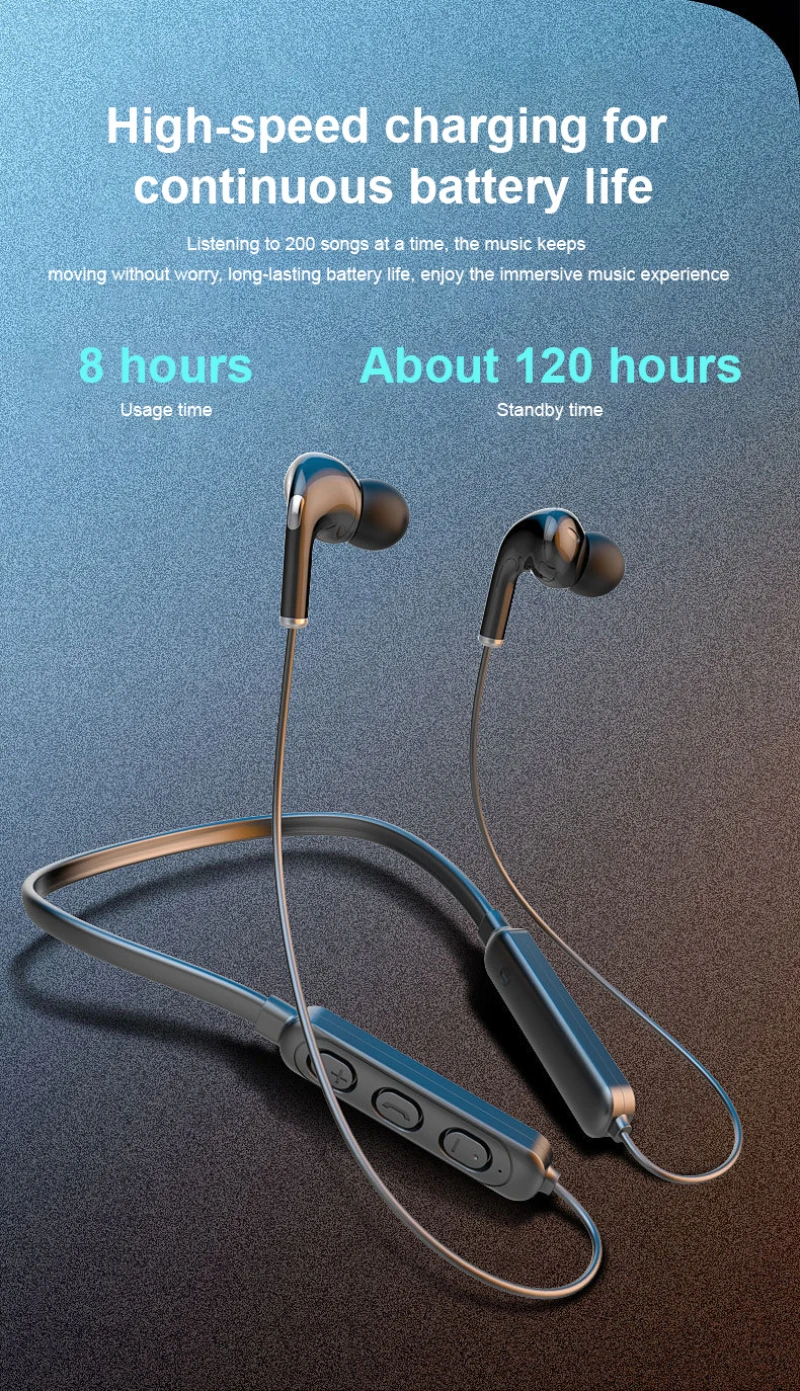 4、[ Neckband & Sweat Proof ] -- With neckband design,provide extra Flexibility, Portability, and Durability when exercising. No falling off,No pain from long time using. IPX waterproof,ideal for exercise.