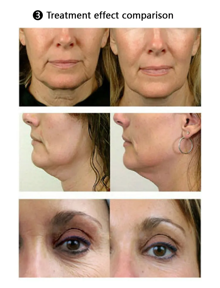 (1) радиочастотный механизм: радиочастотные волны проникают через эпидермис в дерму и нагревают Кожное коллагеновое волокно до 55 ℃-65 ℃. Коллагеновое волокно усадочная и свободная кожа затягивается. В то же время радиочастотный нагрев стимулирует регенерацию коллагена для восстановления упругости кожи и удаления морщин.