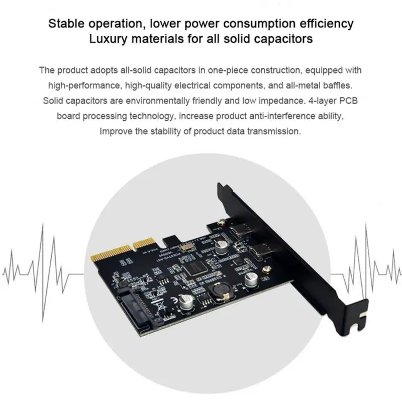 Designed for the future 10Gbps powerful performance port, ITHOO dual TYPE-C card quickly expands dual-port USB3.1 GEN2 for your computer host