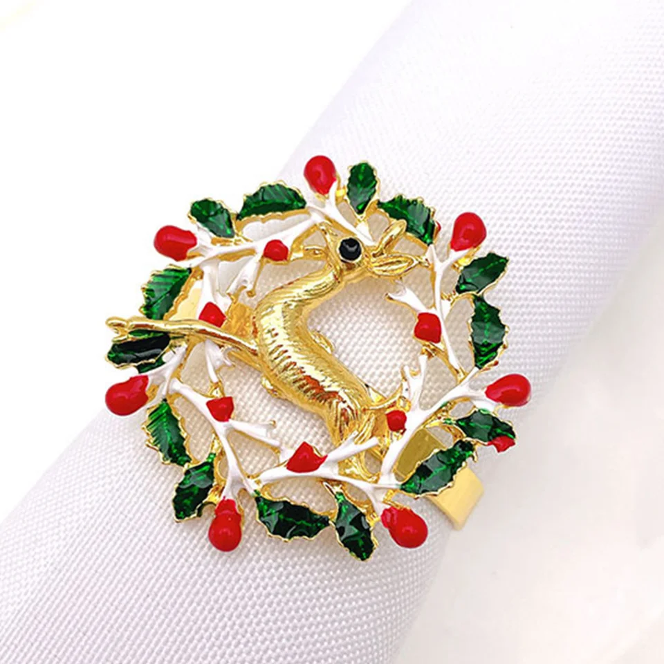 1 шт., рождественские кольца для салфеток, Рождественское украшение для салфеток, Металлический Венок, кольцо с оленем, домашние вечерние украшения для стола