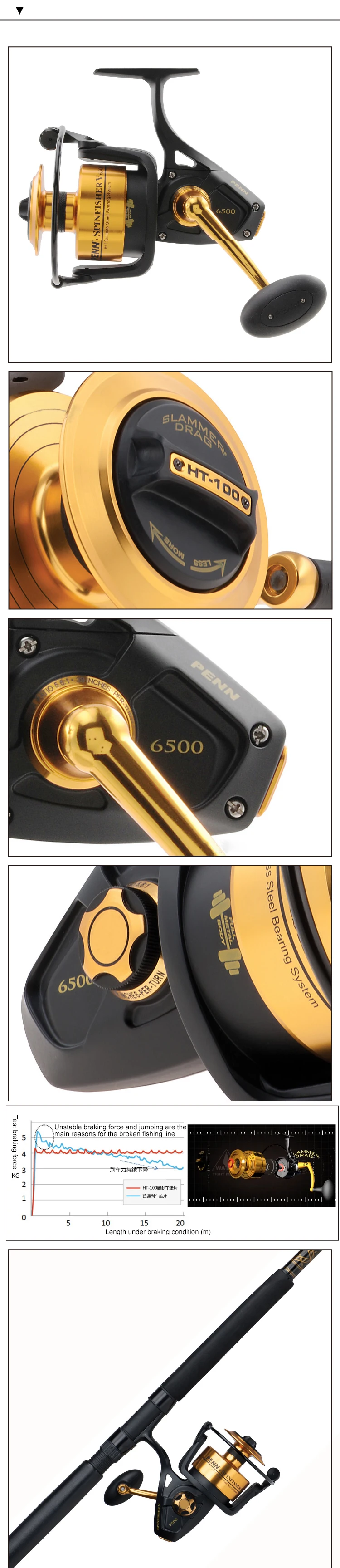 Оригинальная спиннинговая Рыболовная катушка PENN SPINFISHER V SSV 3500-10500 5 + 1BB полностью металлический корпус HT-100 катушка для морской лодки