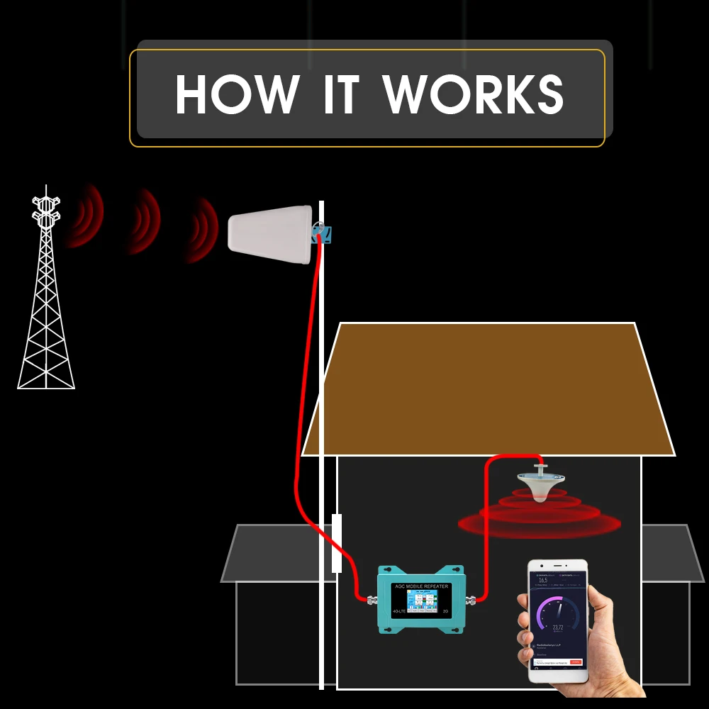 Максимальное усиление усилителя сигнала составляет 80 дБ. Подходит для деревни. Может работать с 3 внутренними антеннами и более одновременно.