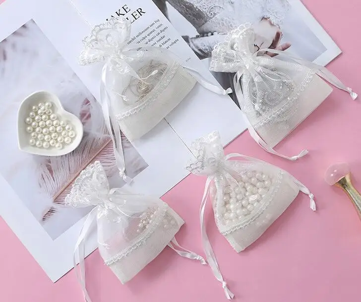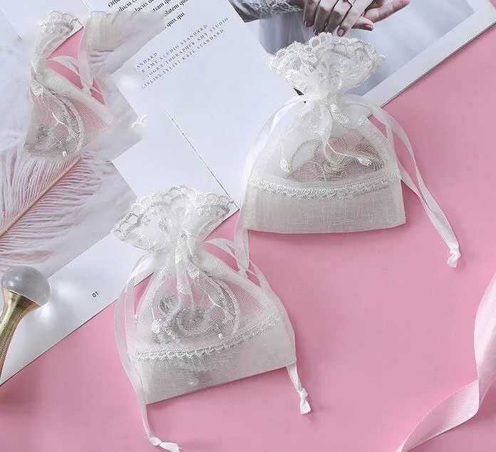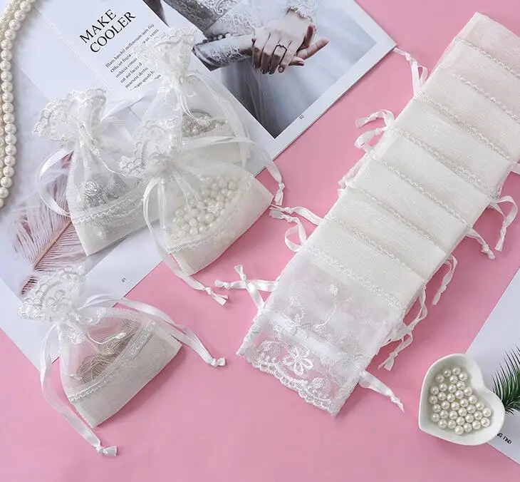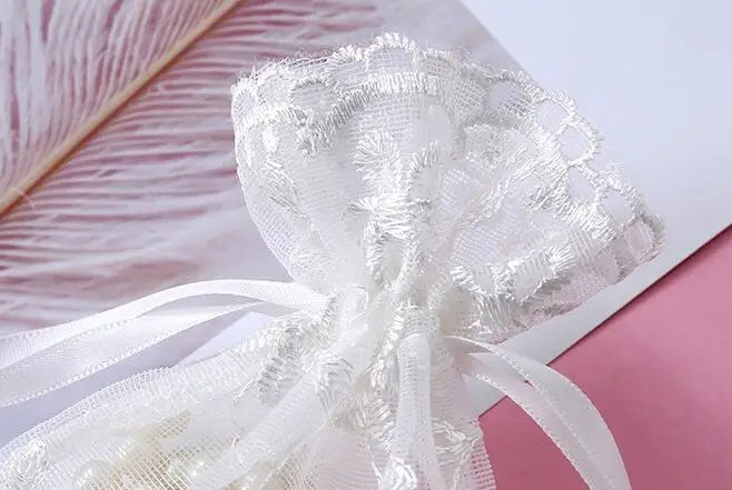 Высокое качество белая вышитая Сетчатая Сумка на шнурке вечерние свадебные рекламные помады Косметика Ювелирная упаковка украшение Подарочная сумка B843D