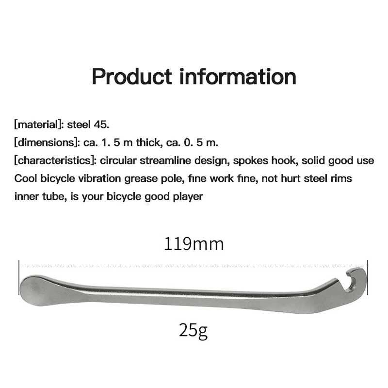 [Funzione] e viene utilizzzato per tirare fuori l' esterno della gomma del pneumatico, che Je 3 мм di spessore e 7 millimetri di larghezza. Иль пьеде ди Порко е Ротонда a entrambe le estfretià e non Je facile da danneggiare Il pneumatico interno. Lungo, si può essere più labor-risparmio energetico per tirare fuori l' esterno del pumatico; utilizzare elevata durezza 45 # acciaio, placatura di bicromato di potassio sulla superficie non Je facile da ruggine e ha una vita più lunga.