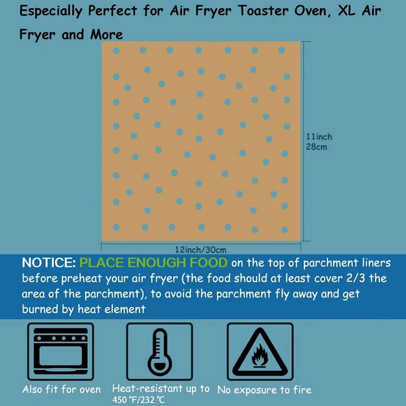 Большие прямоугольные воздушные фритюрницы вкладыши: 11x12 дюймов (28x30 см), подходит для воздушных фритюрных печей, xl воздушные фритюрницы, тостерные печи, Дегидраторы и многое другое. Между тем вы также можете разрезать эти парчи на меньший размер, чтобы соответствовать большему количеству воздушных фритюрных печей