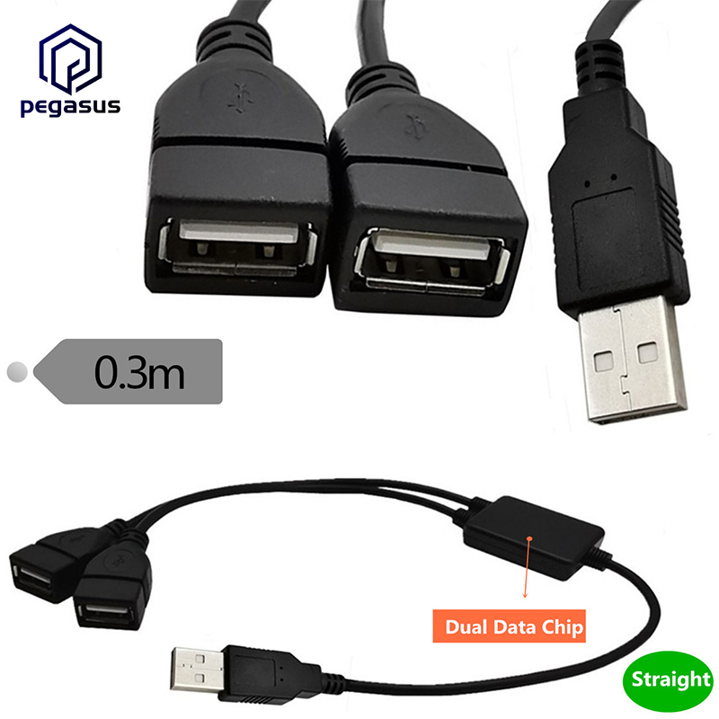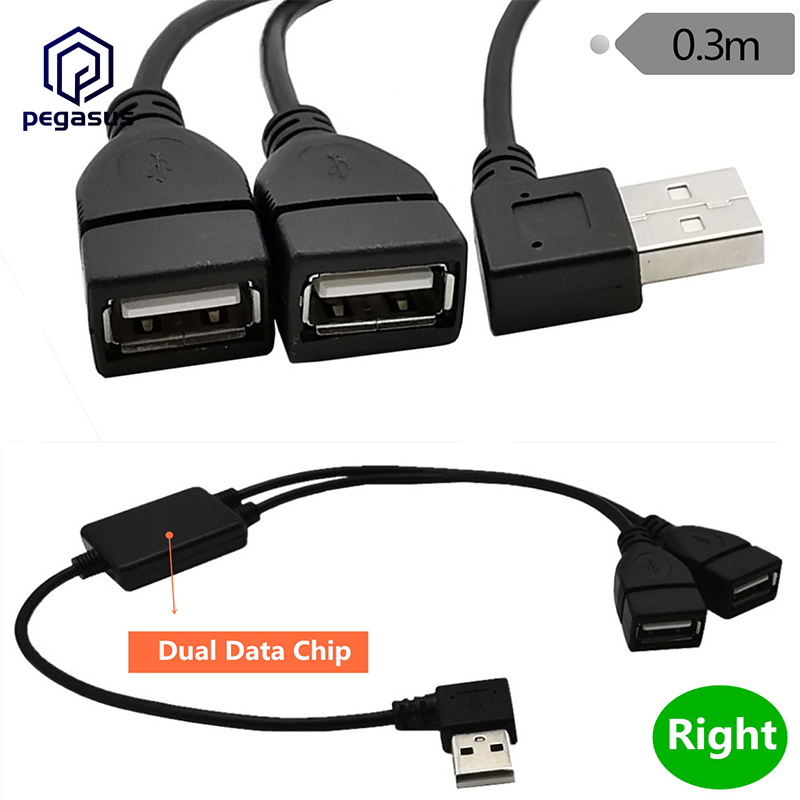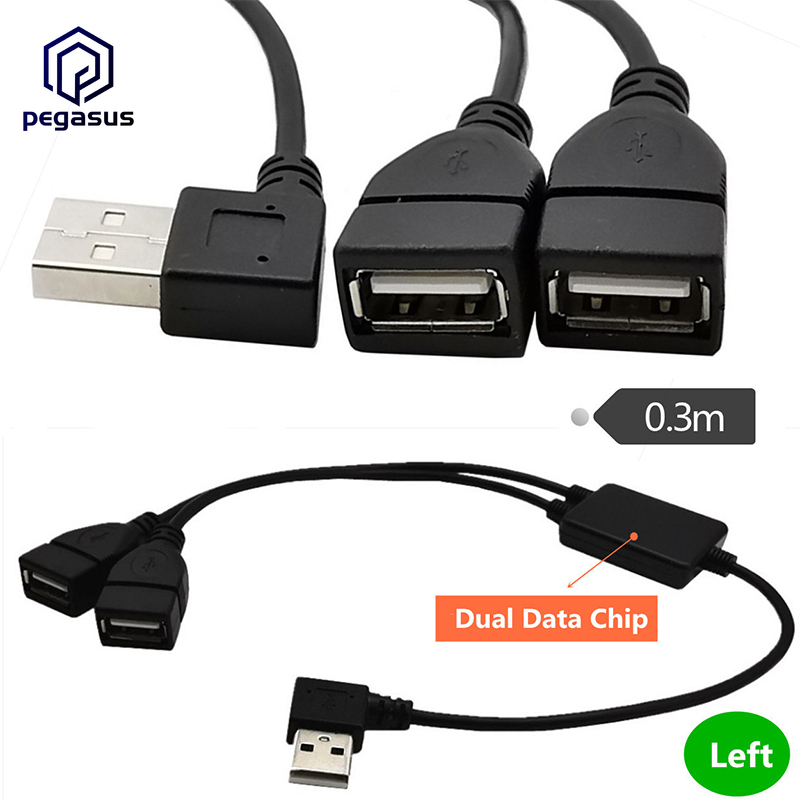 USB 2,0 A штекер к двойному гнезду левый/правый/прямой Y сплиттер концентратор адаптер кабель 0,3 м