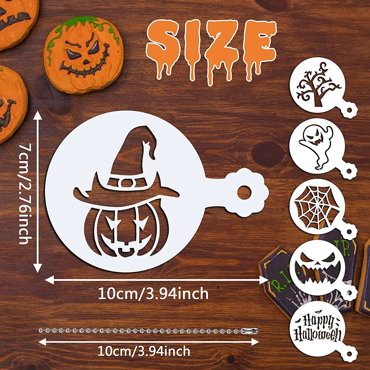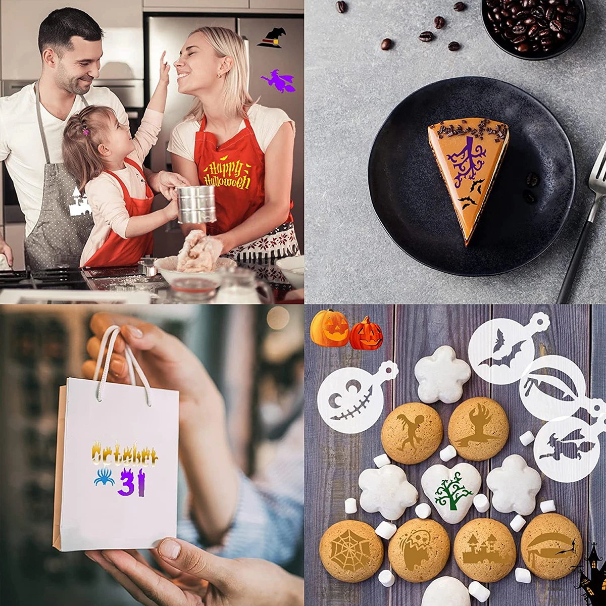 Эти трафареты для торта на Хэллоуин могут быть в непосредственном контакте с едой. После использования, пожалуйста, постирайте его с мылом и водой, и это удобно для повторного использования и хранения.