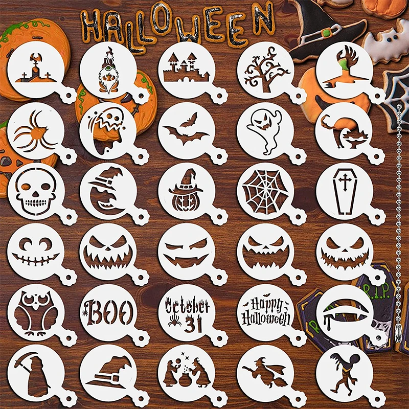 30 шт. трафареты для торта на Хэллоуин привидение Тыква Форма для торта помадка кофе трафарет для печенья шаблон для печенья инструмент для украшения