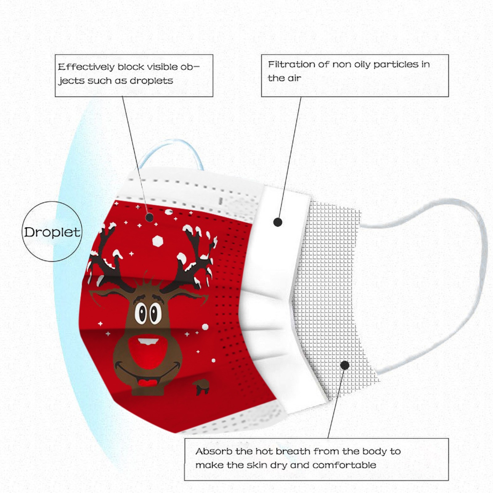 Идеальный дизайн, когда вы носите его, он легко помещается в лицо. Эластичная Ушная петля легко носить и не давит на уши.