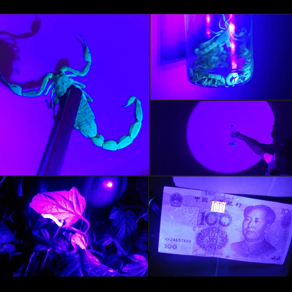 УФ-фара, черный светильник идеально подходит для обнаружения сухих пятен собаки и грызуна и неблагоприятных пятен, которые не могут видеть невооруженным глазом. Легко определить скорпионов, аутентифицировать валюту, водительские права, официальные удостоверения личности, паспорта.