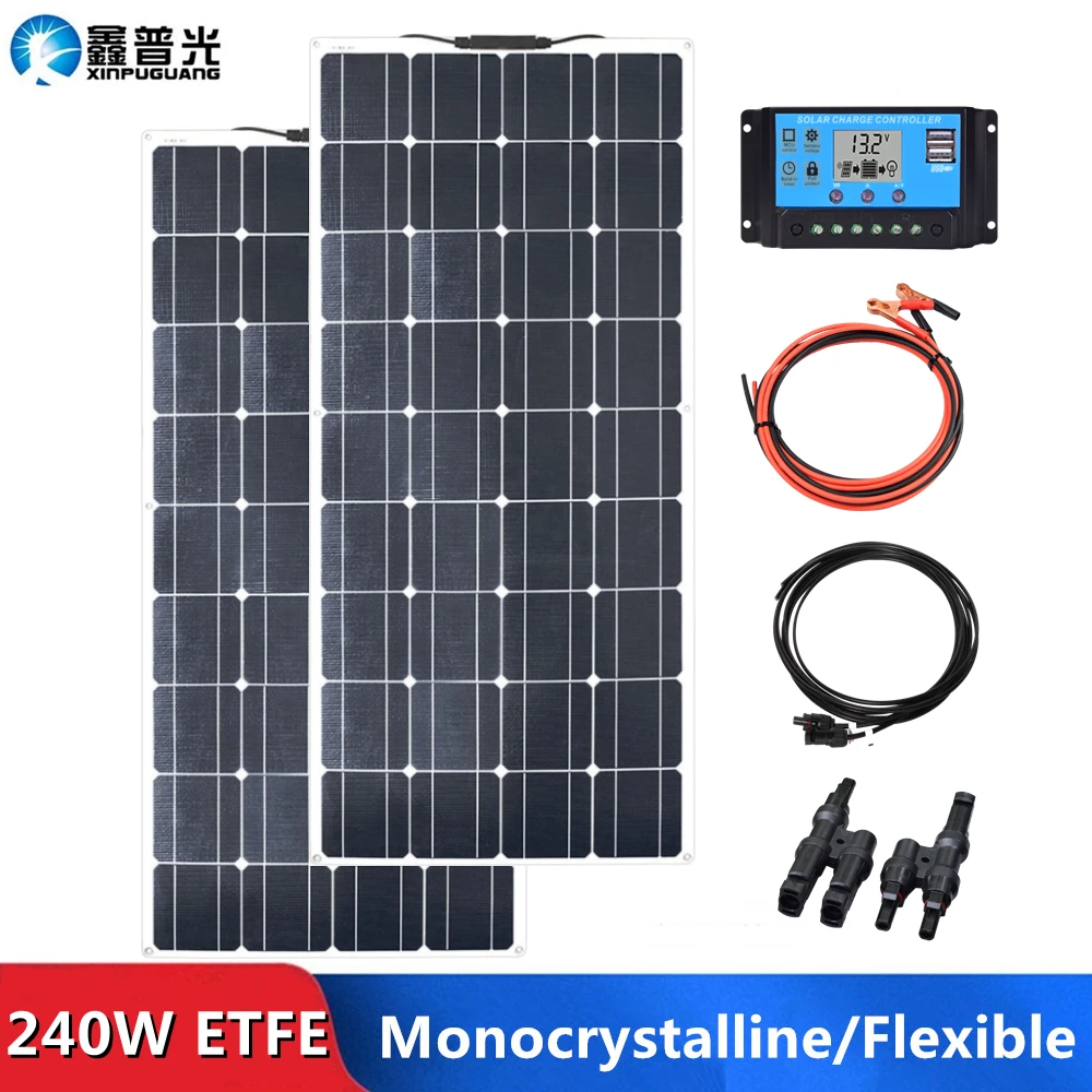 240 Вт ETFE гибкие солнечные панели набор монокристаллических ячеек 18 в 120 Вт PV панели 12 В 24 в зарядное устройство RV домашняя фотоэлектрическая система