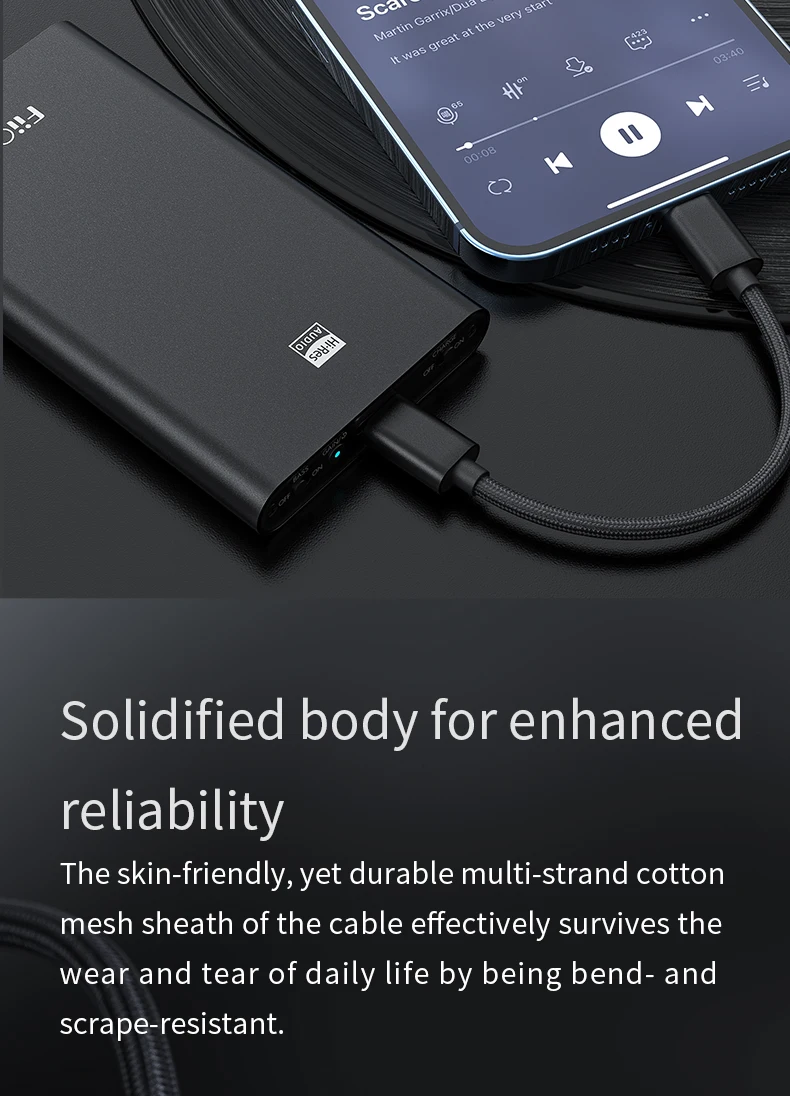 FiiO LT-LT1 кабель для передачи данных Lightning и USB Type-C для подключения устройств iOS к DAC / AMP BTR3K BTR5 Q3 K3 и т. д.
