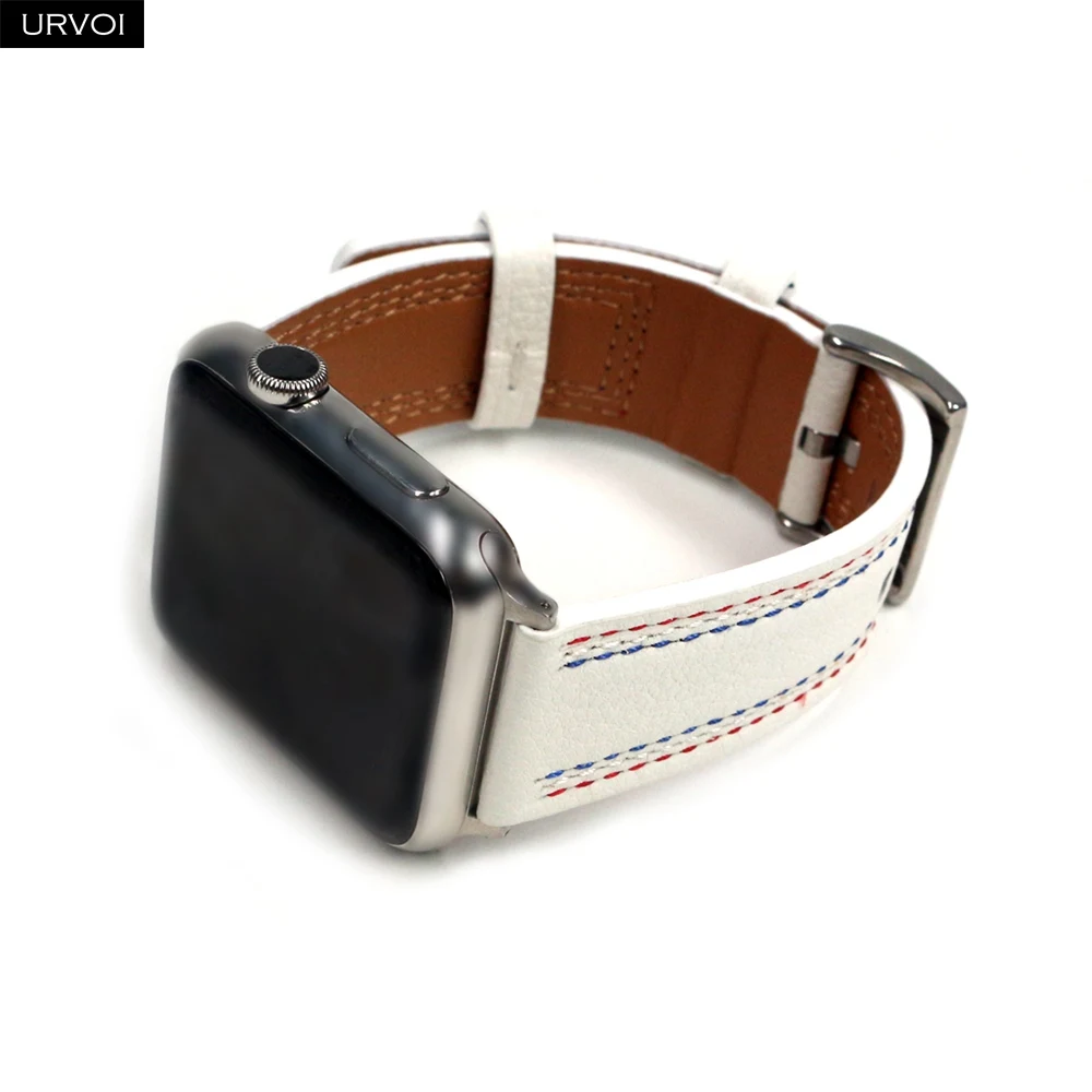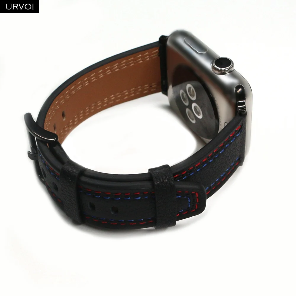 URVOI ремешок для Apple Watch series 7 6 SE 5 4 3 2 1 ремешок из натуральной кожи для iWatch наручные 3 строчки стильный дизайн 41 45 мм