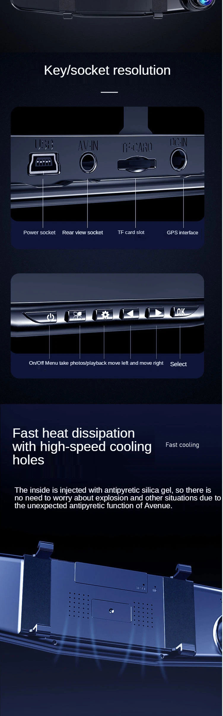Запись hd-видео в режиме 1080P. Широкоугольный объектив фронтальной камеры может снимать четкое HD-видео. Видео и аудио Автоматически записываются в бесконечную петлю и сохранены на карте памяти. Запись дорожных происшествий, живописных путешествий, неожиданных моментов или любых социальных достойных видео.
