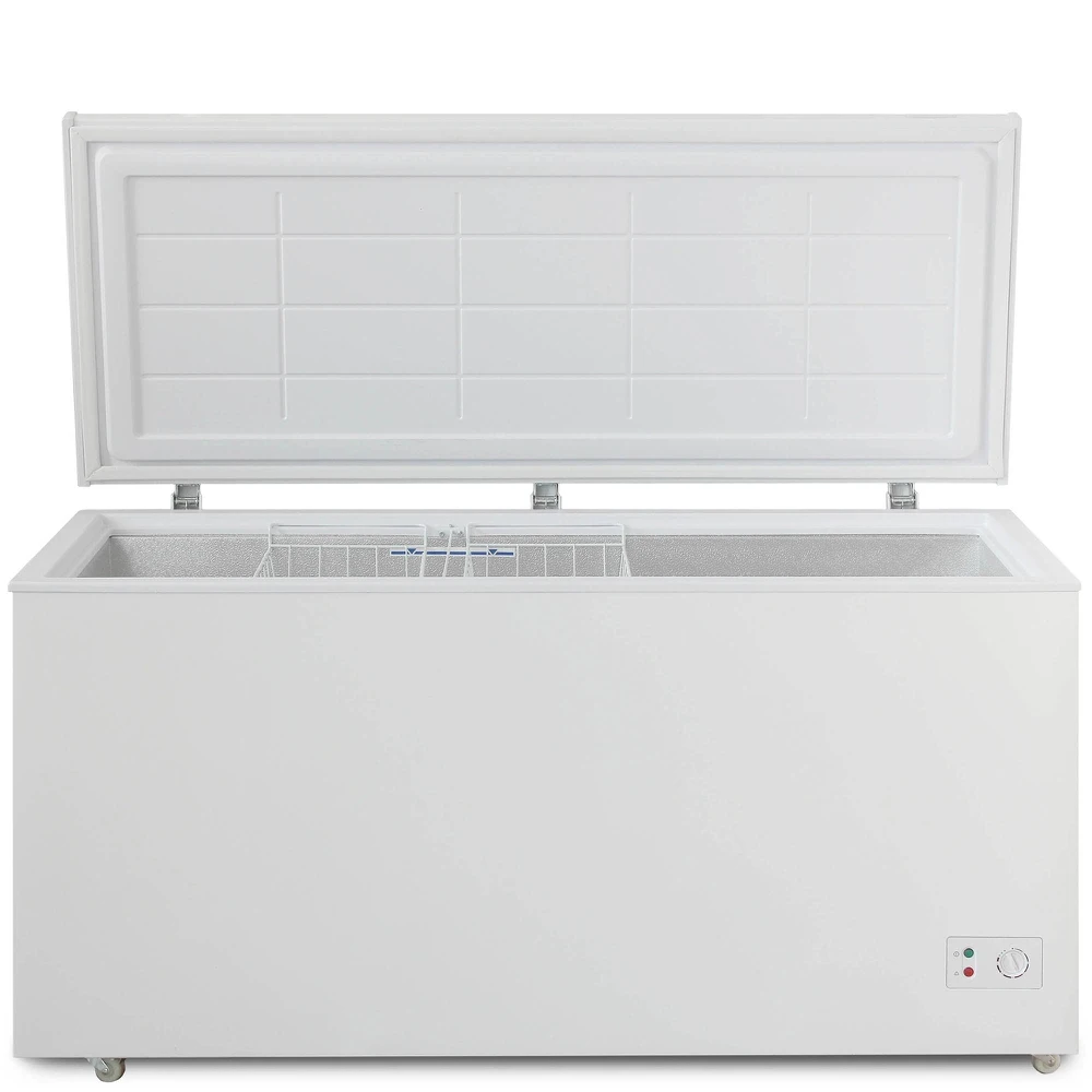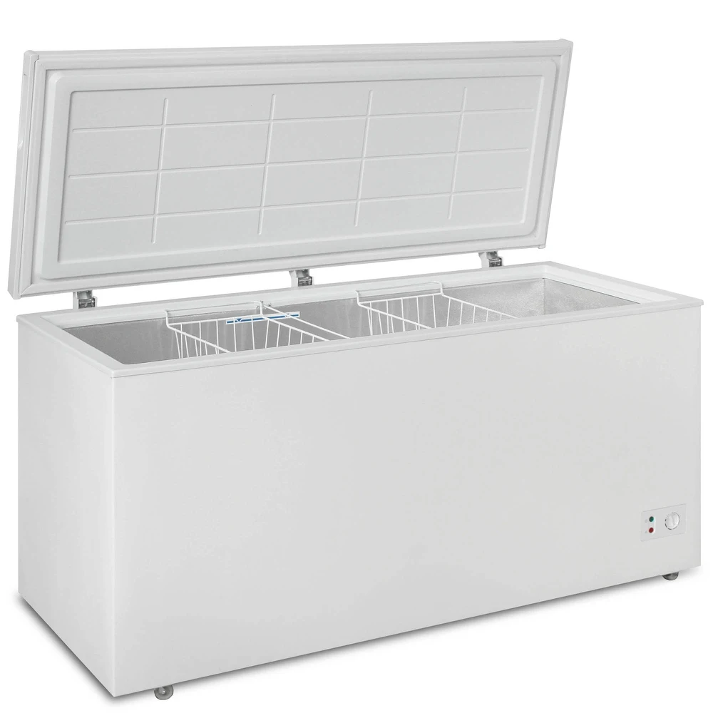 Морозилка Бирюса 455KХ позволяет замораживать и хранить большое количество различных продуктов. Внутренний объем этой модели составляет 420 л. Габариты устройства равны 150х81.5х68 см. Для удобства перемещения в конструкции предусмотрены ножки-колесики. Морозильный ларь Минимальная температура внутри камеры может опускаться до -18 °С. Внутри располагается 2 подвесные корзины.
