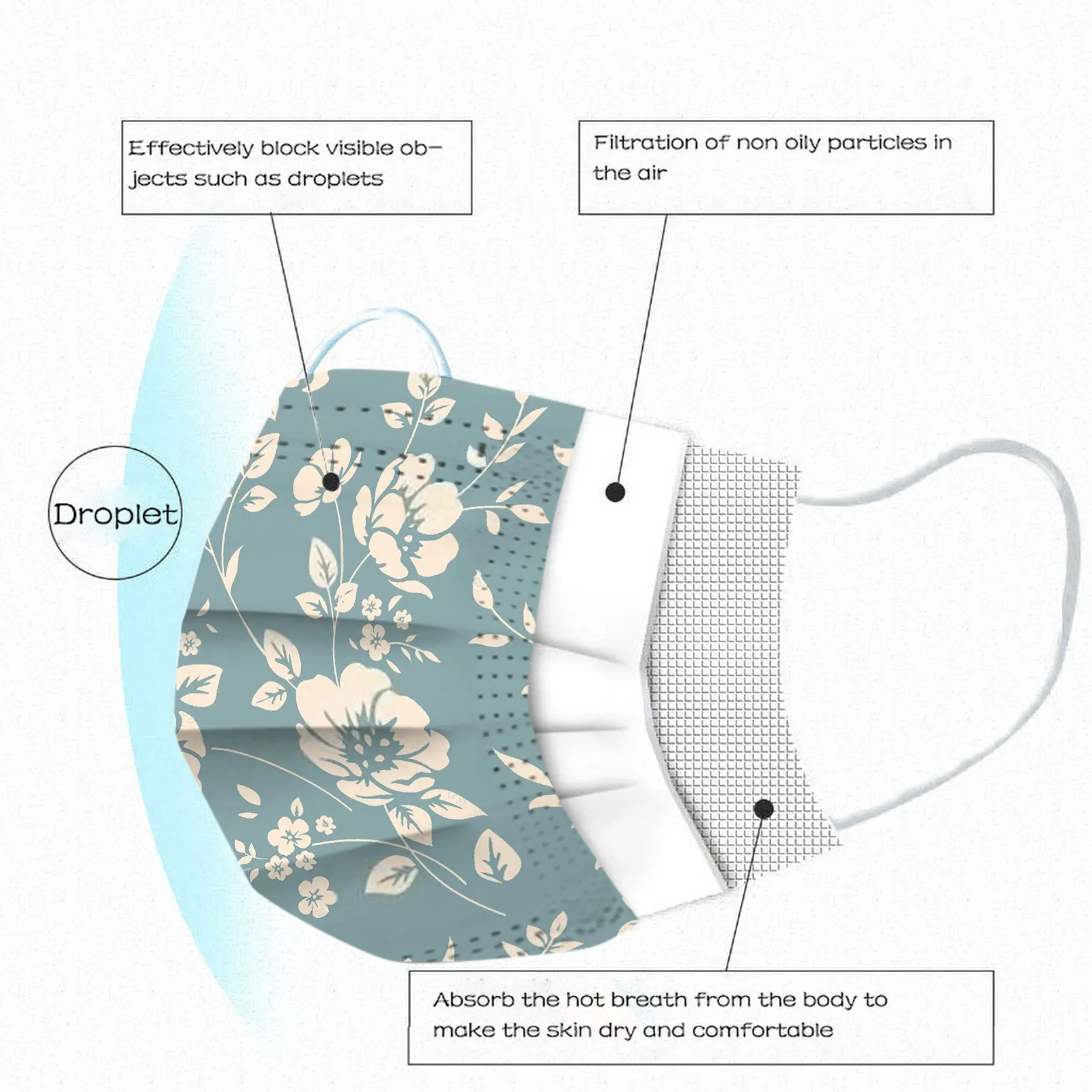 10 шт. взрослая маска с цветочным узором одноразовая маска для лица 3Ply Ушная петля Anti-PM2.5 маски