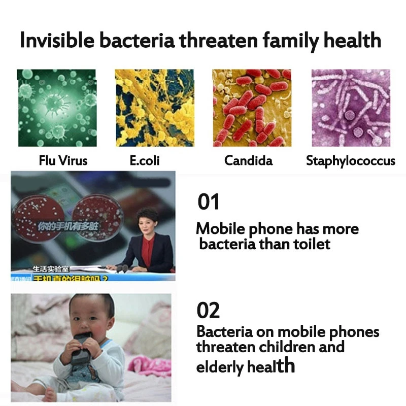 1 、 быстро и эффективно стерилизовать-это стерилизатор с 2 шт. UV светильник использует ультрафиолетовый светильник дезинфекции, безвредно для человеческого тела, а также обеспечивает высокую скорость стерилизации до 99.9%, эффективно убивает бактерии на смартфоне за 5 минут и защищает вас и ваших детей от микробов.