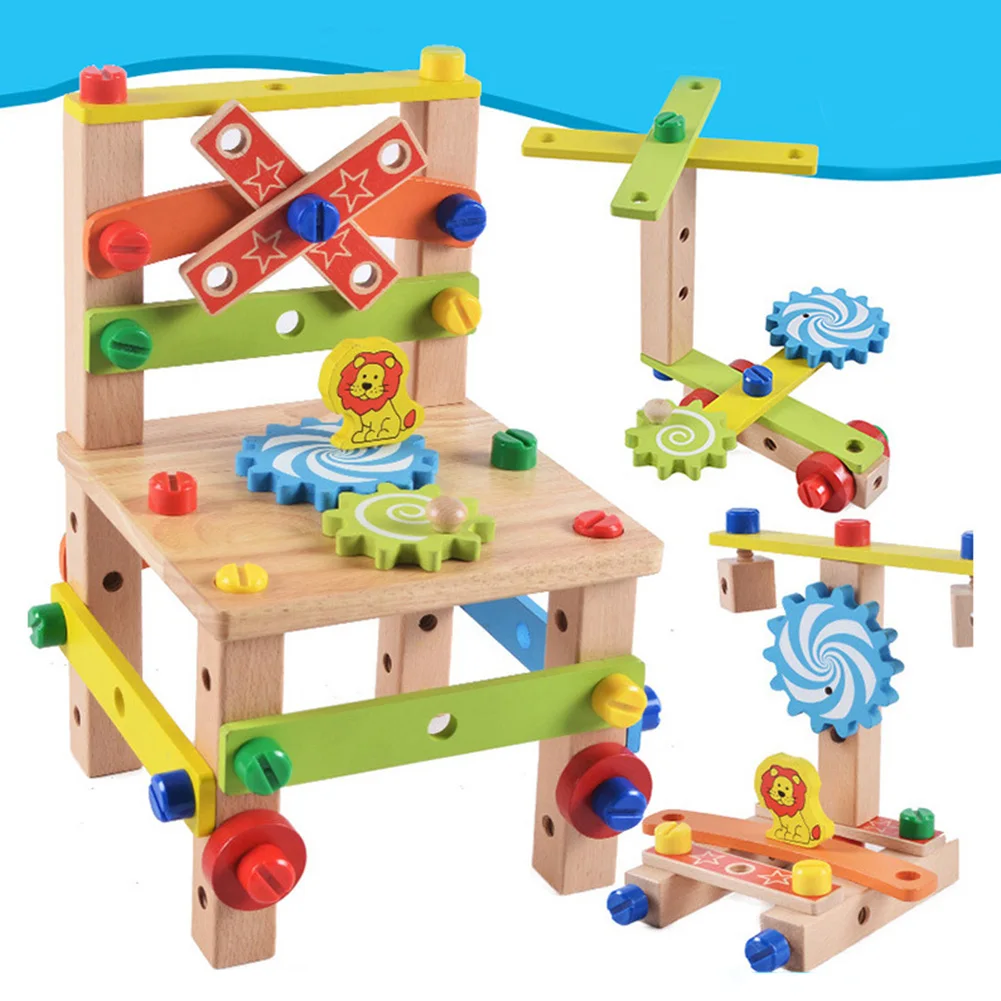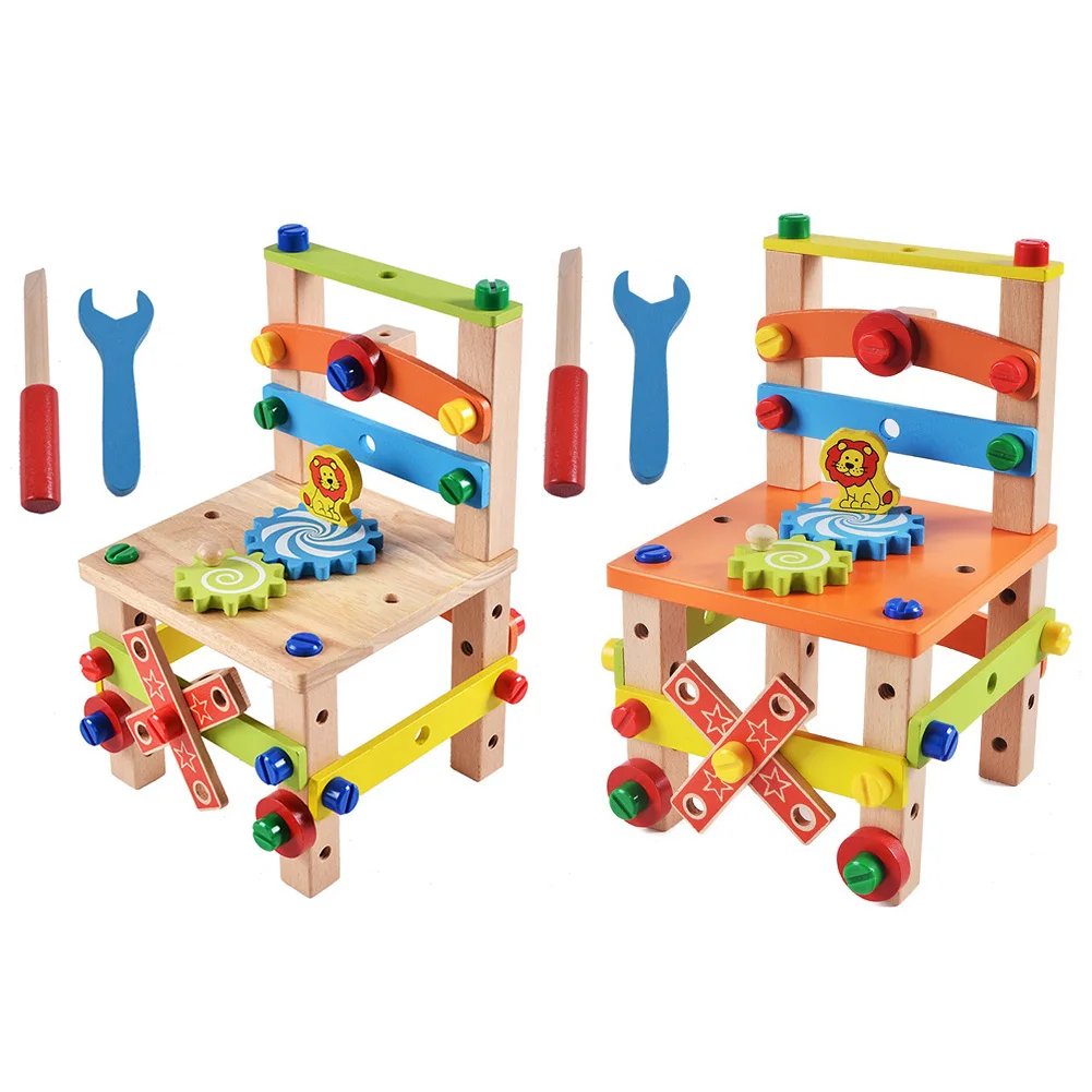 Моделирование DIY деревянный сборный стул Монтессори детские развивающие ролевые игры игрушки для дошкольного обучения различные гайки комбинированный инструмент
