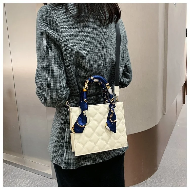 Повседневные сумки портативные женские белые высококачественные текстуры ромбовидная решетка вышитый шелк Декор на шарф плечо сумка-мессенджер квадратная сумка