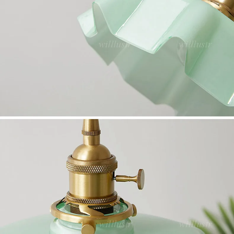 Стеклянный подвесной светильник-цветок Ретро Медный Подвесной Светильник для отеля кафе бар прикроватный светильник в японском стиле синий зеленый желтый розовый светильник ing