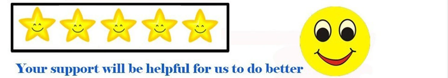1. Дорогой покупатель, если вы удовлетворены нашими продуктами и услугами, пожалуйста, дайте нам 5 звезд, мы дадим вам 5 звезд и положительные отзывы.