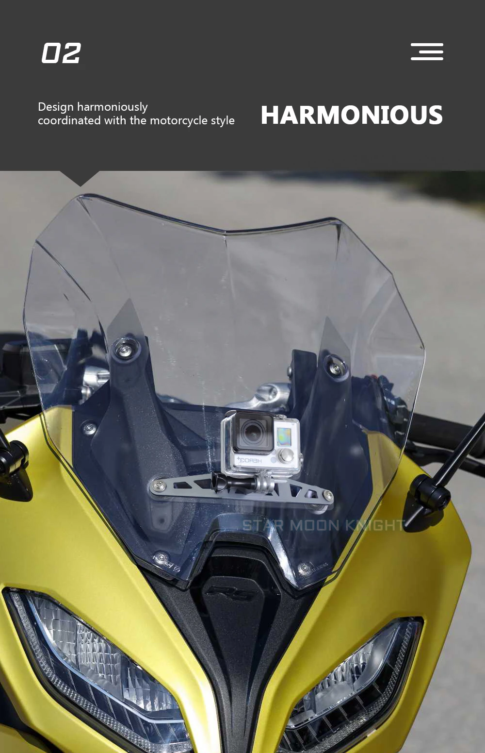 CamRack идеально выполняет эти требования. Он крепится к кронштейну лобового стекла, т. Е. К стабильной конструкции, которая была разработана R1250RS для поглощения высоких сил давления ветра.