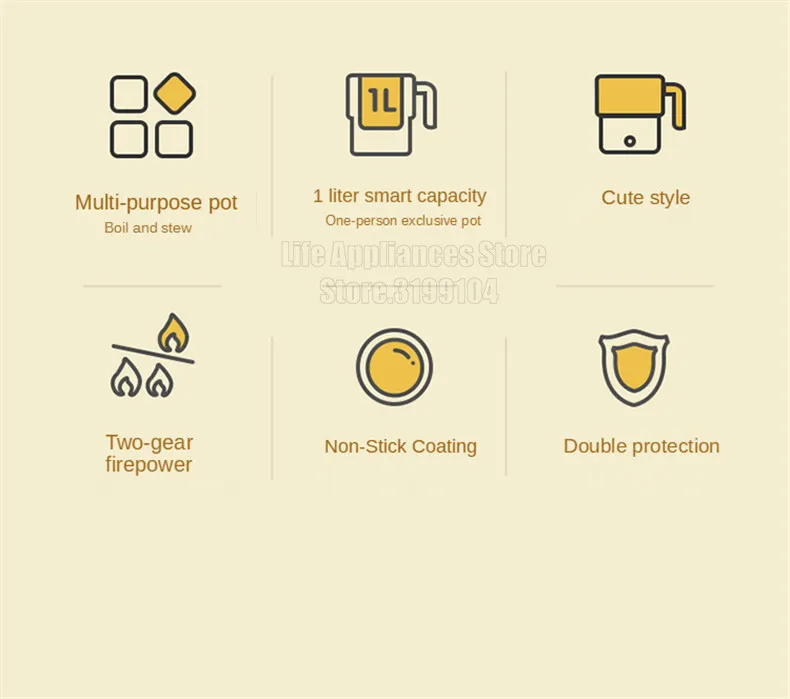 1. Многофункциональная электрическая мини-плита, 1л емкость, подходит для одного человека, может готовить лапшу, кашу, тушеные десерты и т. Д. Это как миска, так и горшок, двухцелевой тип, подходит для общежитий или домашних офисов;