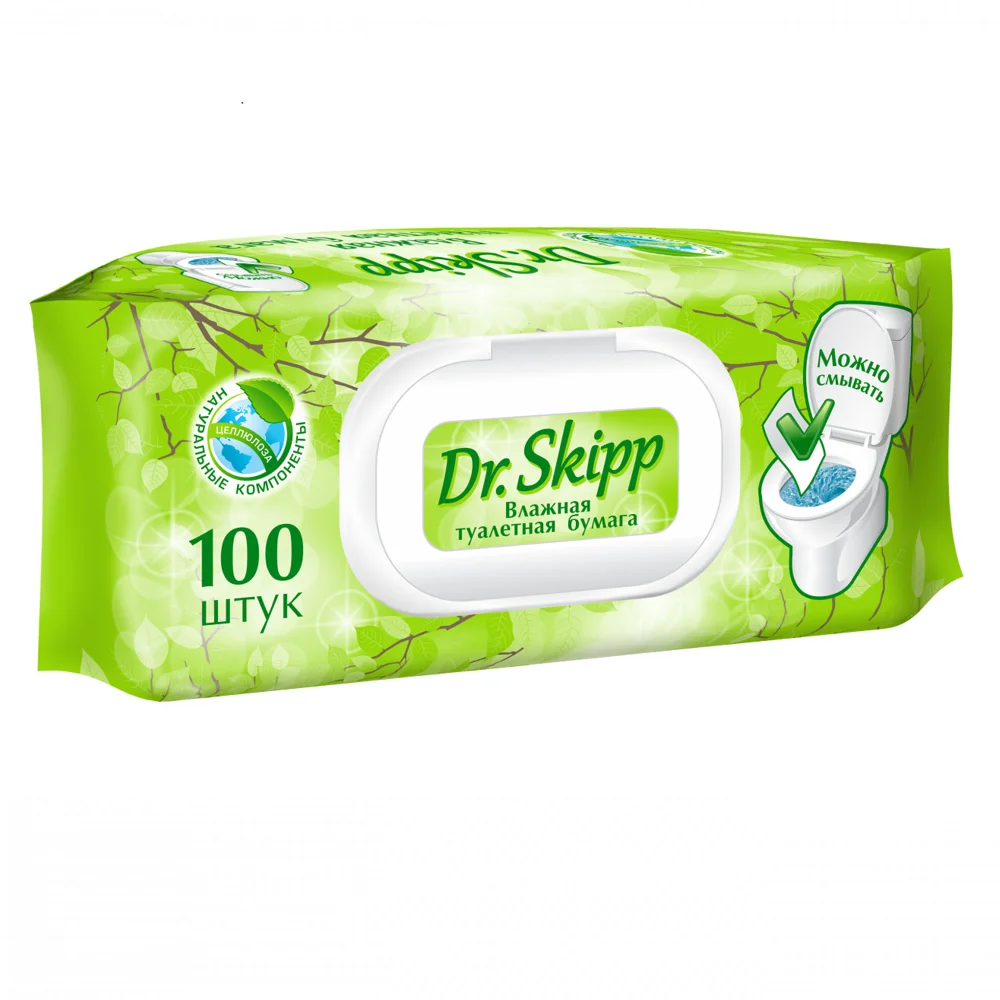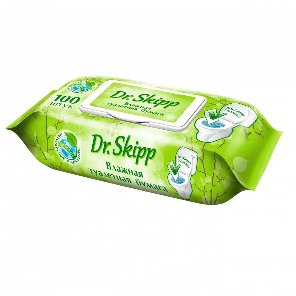 Входящие в состав экстракт ромашки и молочная кислота успокаивают кожу и не приводят к раздражениям. Помимо этого, влажную туалетную бумагу Dr.Skipp можно смывать. Влажная туалетная бумага Dr.Skipp - идеальный вариант чтобы взять ее с собой в дорогу, так как это удобно и выгодно!