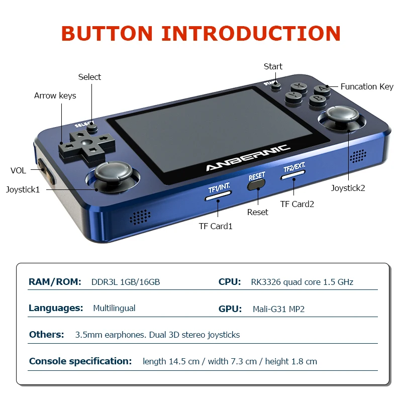 RG351mp поддерживает до 256G карты, встроенный 50000 + классические игры, обогатить ваш игровой опыт.
