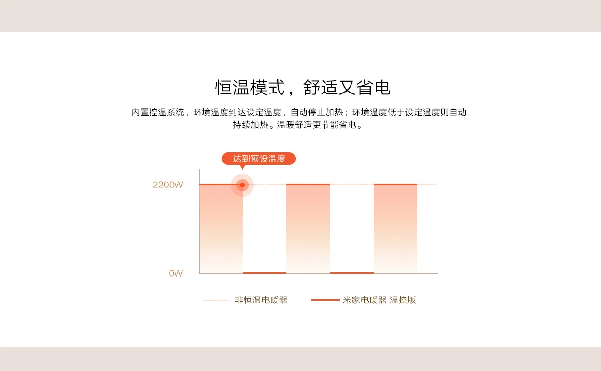 Версия Mihome appliance heater с контролем температуры может переключаться на три уровня мощности для удовлетворения различных потребностей в использовании. Он может быть настроен на более удобную температуру через ручку контроля температуры, что делает его более удобным.