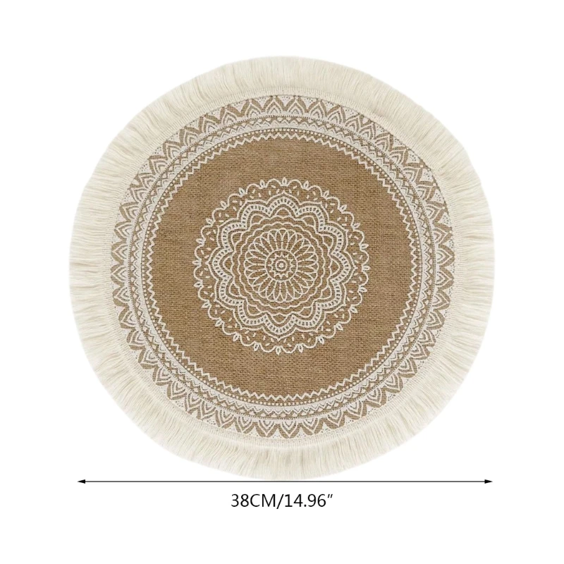 Дизайн в стиле бохо, круглый коврик. Кисточки на внешней стороне круглых салфеток очень хорошо сделаны.