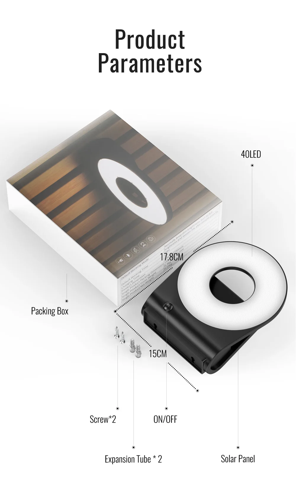 Солнечные наружные светильники изготовлены из водонепроницаемого АБС-материала IP65, даже если наружная погода плохая, она отлично работает. (Морозостойкость/Термостойкость/Водонепроницаемость).